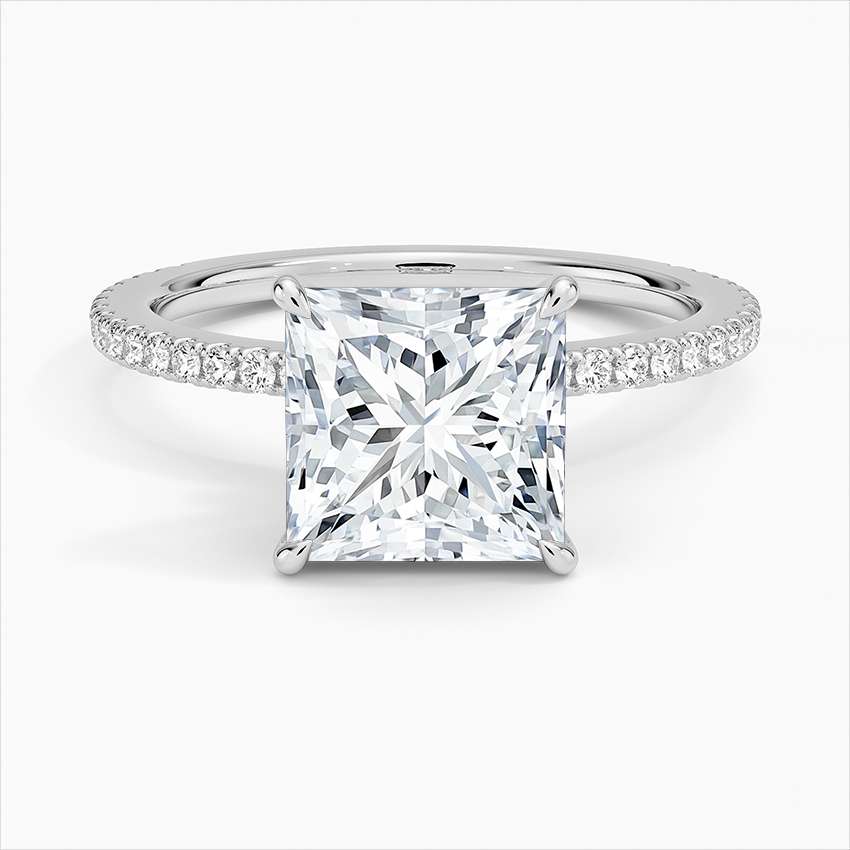 Stella dazzles as a princess-cut solitaire ring with a sleek 4-claw setting, showcasing a carbon-neutral lab-grown diamond. Its modern allure and graceful accent band symbolise elegance and love